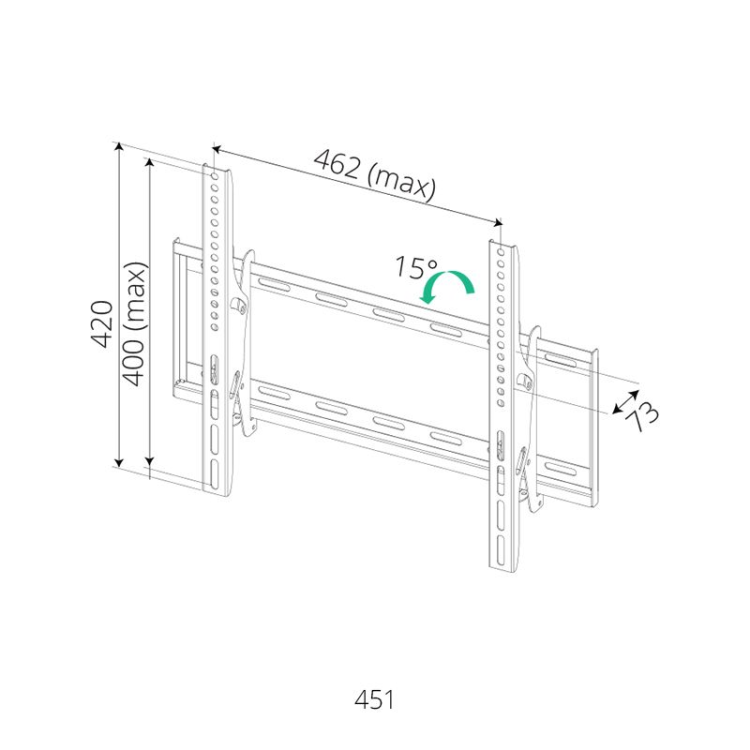 תיאורמשקל מקסימלי 40 ק"גהטייה 15 מעלותVESA 200×100 ,200 , 400×200 ,400מרחק מהקיר 7.3 ס"מחיבור מהיר והתקנה בטיחותית